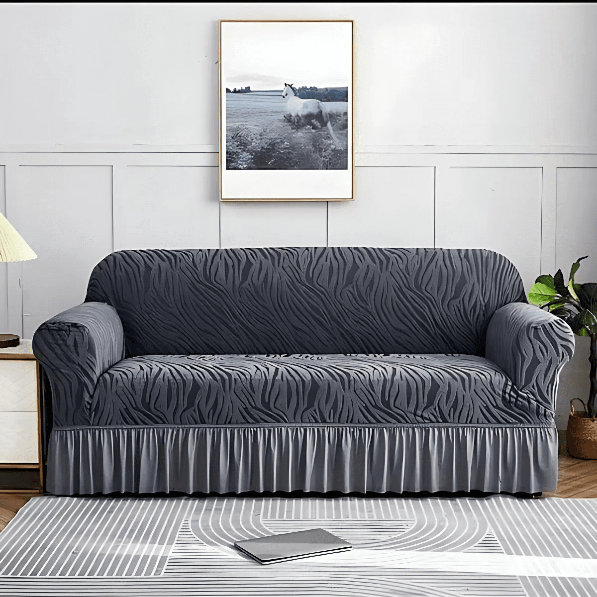 Be the first to review “Zebra Velvet Sofa Cover Dark Grey”