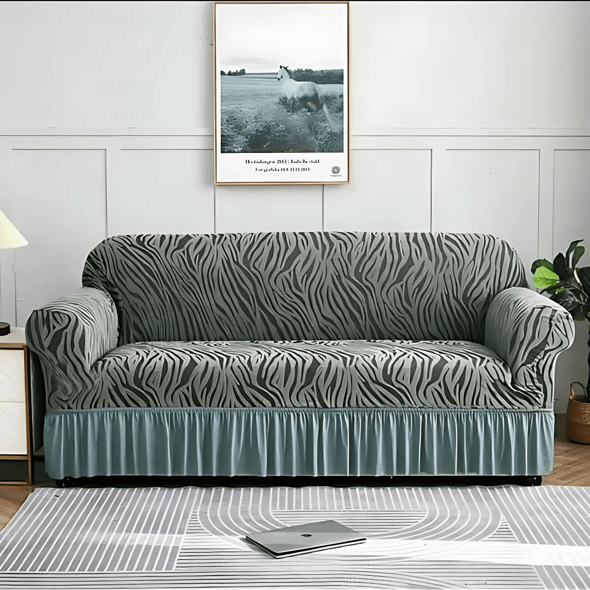 Be the first to review “Zebra Velvet Sofa Cover Light Grey”